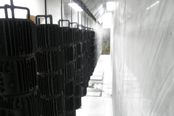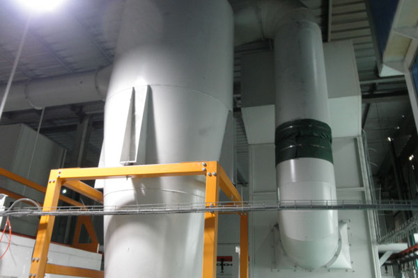 噴粉設(shè)備包括噴粉室、供粉系統(tǒng)(含槍+提升機(jī))、回收裝置、通風(fēng)系統(tǒng)等,回收裝置有布袋+旋風(fēng)、濾芯、小旋風(fēng)+濾袋、小旋風(fēng)+多孔板等形式。